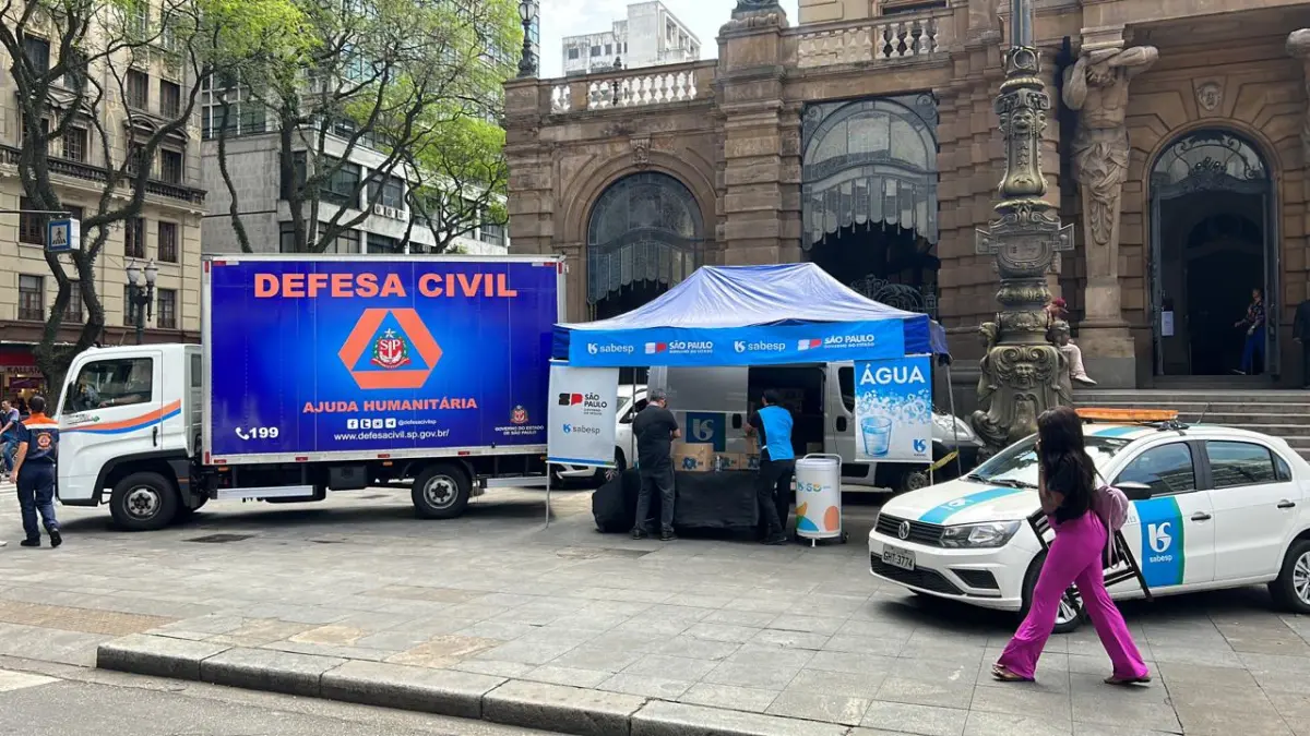 Nesta quarta, a ação foi realizada na Praça da Sé e no Teatro Municipal. Além de distribuir água envasada em copos descartáveis ficará disponível água potável em bebedouros, a população será orientada pela Defesa Civil com recomendações como manter hidratação constante, evitar a exposição direta ao sol nos horários mais críticos e umidificar ambientes fechados.