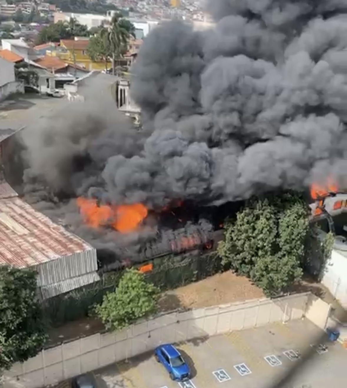 Um incêndio atingiu uma fábrica de sofá, informa o Corpo de Bombeiros, neste sábado (27) no centro de São Bernardo.