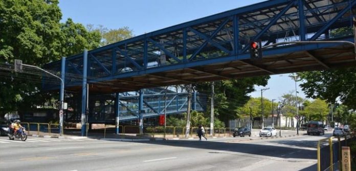 O piso da passarela central que liga a Avenida João Ramalho com a rua Rio Branco, em Mauá, cedeu durante a 36ª Festa Junina, na última sexta-feira (23).