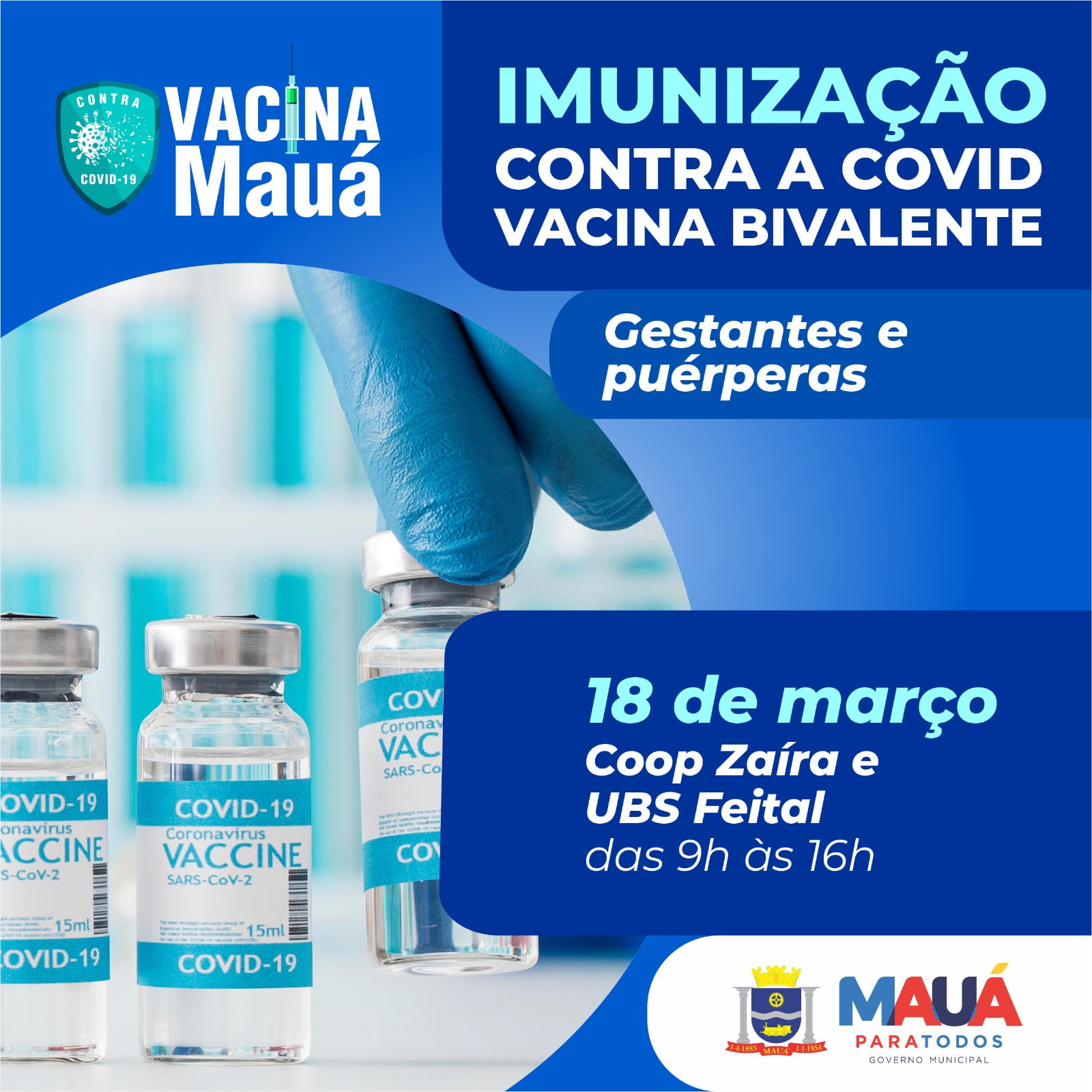 A Prefeitura de Mauá avança com a imunização contra a Covid. Em ação neste sábado (18/03), as gestantes e mulheres que deram à luz até no máximo 45 dias (puérperas) começam receber a vacina bivalente na cidade.