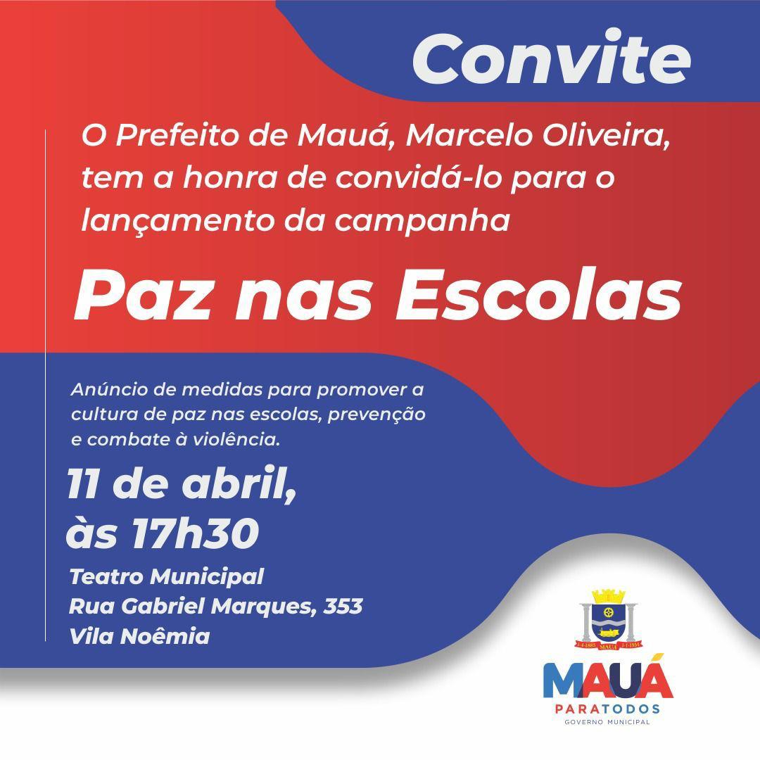 Nesta terça-feira (11), às 17h30, a Prefeitura de Mauá promoverá evento para debater e unir forças em prol da paz, além de prevenir casos de violência nas escolas.