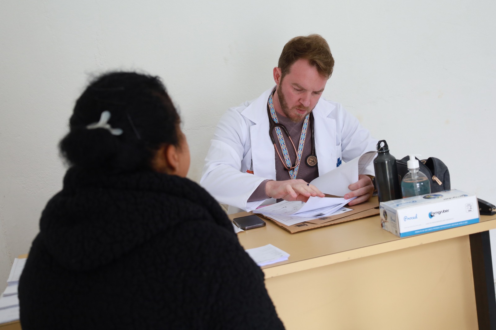 O médico generalista André Hartfelder Ambrosi está formado desde 2021 e atua há seis meses na UBS Feital, junto com mais seis médicos. Destes, ele está entre os quatro contratados por meio do programa Mais Médicos.