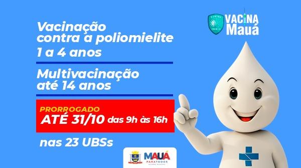 A Prefeitura de Mauá estendeu até 31 de outubro as campanhas contra a poliomelite e de multivacinação. O objetivo é ampliar a cobertura vacinal, principalmente de crianças.