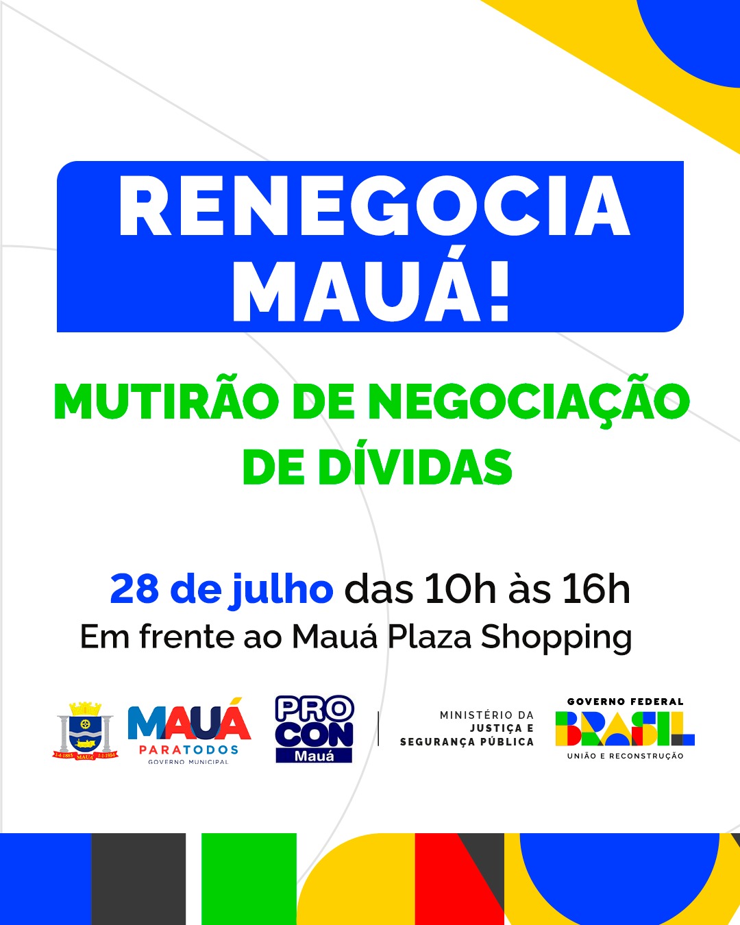 Para aqueles que não conseguirem comparecer ao Plantão Renegocia Mauá, mas quiserem ter acesso ao Renegocia!, iniciativa liderada pelo Governo Federal, por meio da Secretaria Nacional do Consumidor (Senacon), do Ministério da Justiça e Segurança Pública (MJSP), pode fazer isso até 11/08 no Procon Mauá, que fica dentro do Poupatempo da cidade.