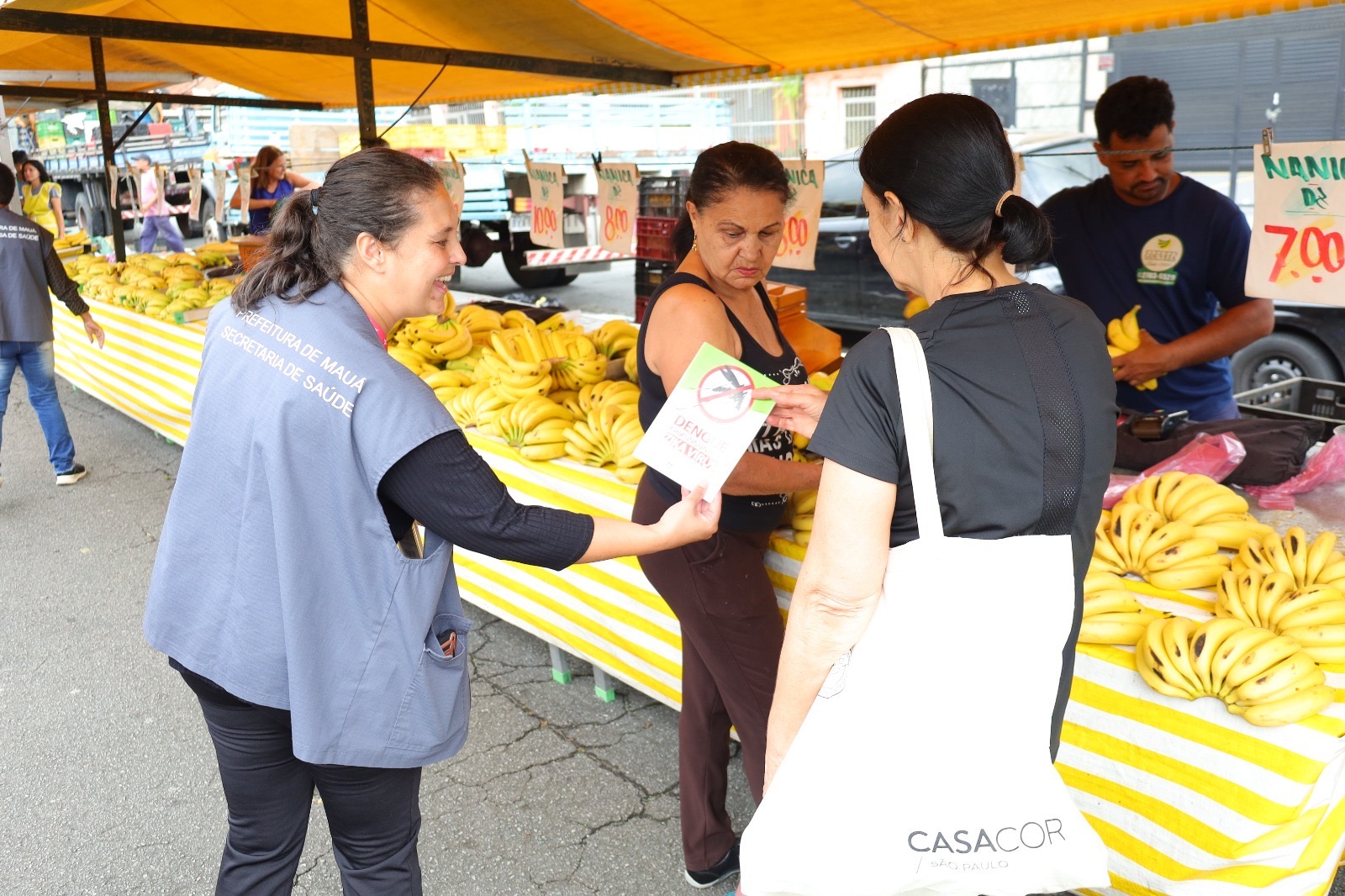 Foram realizadas abordagens e a distribuição de panfletos. Um dos pontos altos foi a parada na feira livre da avenida Portugal.