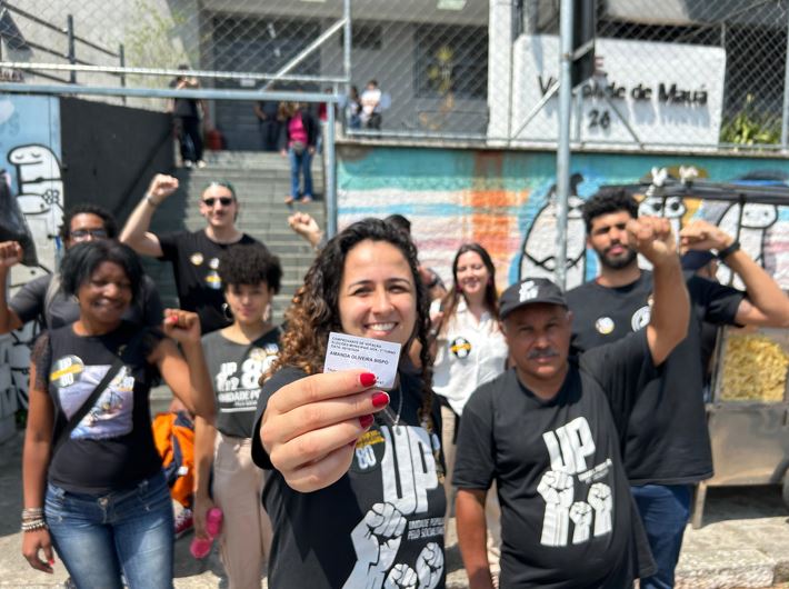 Amanda Bispo, candidata à Prefeitura de Mauá pela UP, juntamente dos candidatos a vereador, Julia Cachos, Selma Almeida e João Abreu votou neste domingo (6), na Escola Visconde de Mauá.