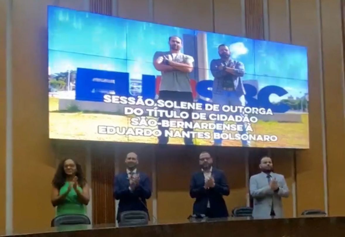 O deputado federal Eduardo Bolsonaro recebeu o título de cidadão em São Bernardo na noite desta quinta-feira (30).