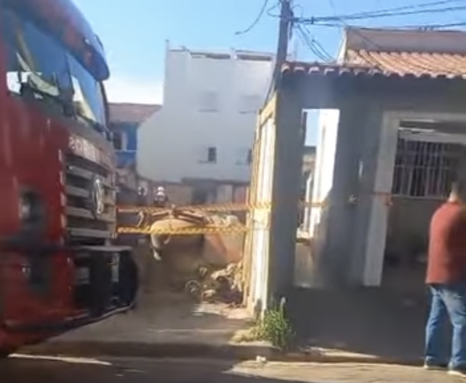 Um muro desabou nesta quinta (20) em uma construção no bairro Camilópolis, em Santo André.