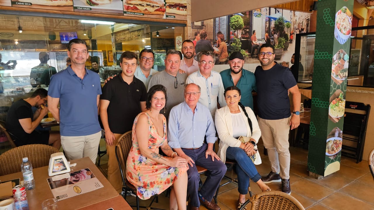 O vice-presidente da República, Geraldo Alckmin, recebeu pré-candidatos a vereador do PSB de São Caetano na manhã deste sábado (27) em uma tradicional padaria do Morumbi em São Paulo.
