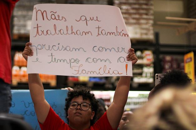 “A gente vai no mercado e tudo tá tão caro e não consegue comprar tudo, tem que comprar o mais necessário. Deixamos muitas coisas sem comprar com as coisas do jeito que tá”, afirma Lucineia Maria de Araújo na manifestação. Ainda acrescenta: “estamos aqui para lutar pelas nossas cestas, porque sabemos que esse mercado desperdiça um monte de comida”.