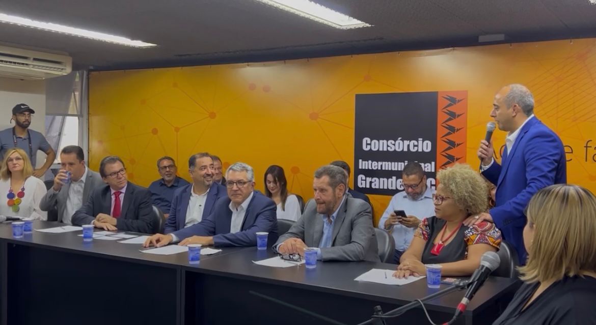 O prefeito de Ribeirão Pires falou por 12 segundos e deu a entender que seguirá no Consórcio, mesmo após ter assinado, no ano passado, nota conjunta – com São Bernardo e São Caetano – anunciando a saída da entidade regional.