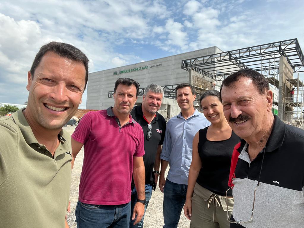 A diretoria da MBigucci aproveitou o início de 2023 para a tradicional visita técnica em novos terrenos adquiridos e obras que estão em finalização, como o Centro Logístico MBigucci Business Park Santo André (foto).