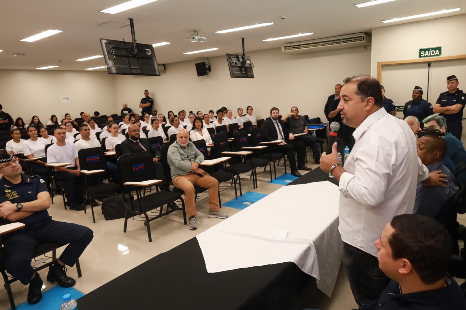 A aula inaugural ocorreu nesta segunda-feira (12) no auditório da Uninove (Universidade Nove de Julho), na região central da cidade, e contou com a presença do prefeito Marcelo Oliveira, dos secretários de Segurança Pública, Coronel Hervando Luiz Velozo, de Educação, José Luiz Cassimiro, e vereadores, além de representantes das polícias Civil e Militar.
