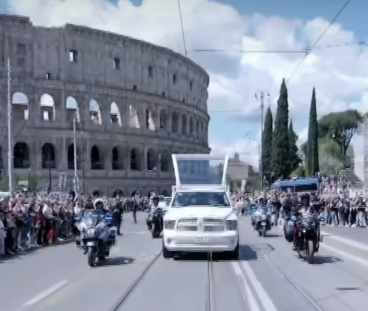 No papamóvel, o mesmo que levou o Papa em tantos deslocamentos, o caixão passou por pontos famosos e simbólicos da capital italiana, como o Coliseu, o Fórum romano e a Igreja Il Gesù, sede da ordem dos jesuítas, da qual Francisco fazia parte.