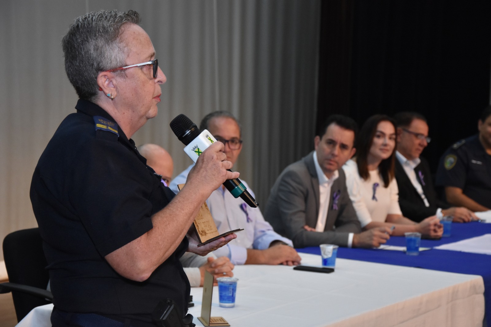 Uma das mulheres atendidas pela Patrulha Maria da Penha, Juliete Alves dos Santos, contou sua história e emocionou os participantes com seu relato.