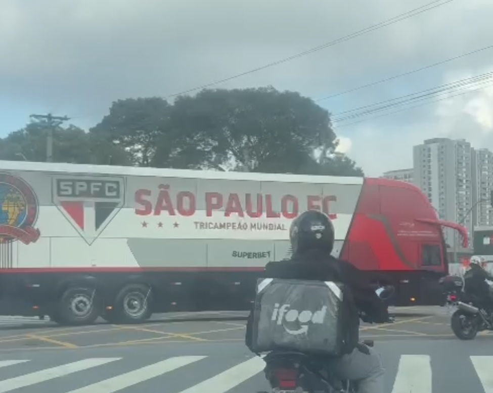 O ônibus do “tricolor” chegou às 16h40. Veja