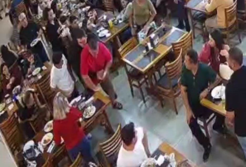 Um policial militar de folga salvou um homem que se engasgou em um restaurante na rodovia Washington Luís, em Araraquara, no interior de São Paulo, na tarde do último domingo (24). Imagens de câmera de segurança do estabelecimento registraram a ação.