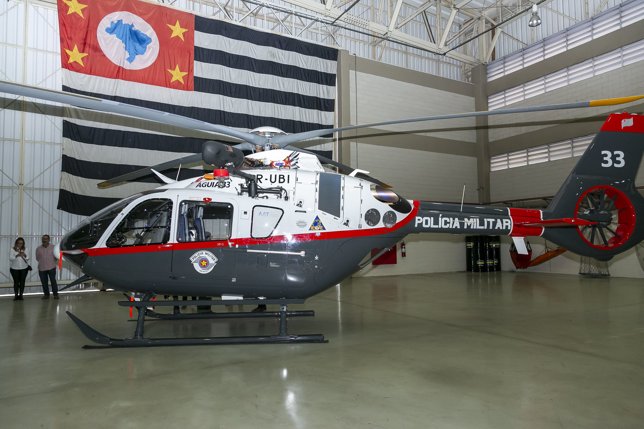 O governador Tarcísio de Freitas entregou, na sede do Comando de Aviação da Polícia Militar, o novo helicóptero Águia 33. Modelo H135, a aeronave moderniza as ações de salvamento da PM e foi apresentada no Campo de Marte, em Santana, zona norte de São Paulo.