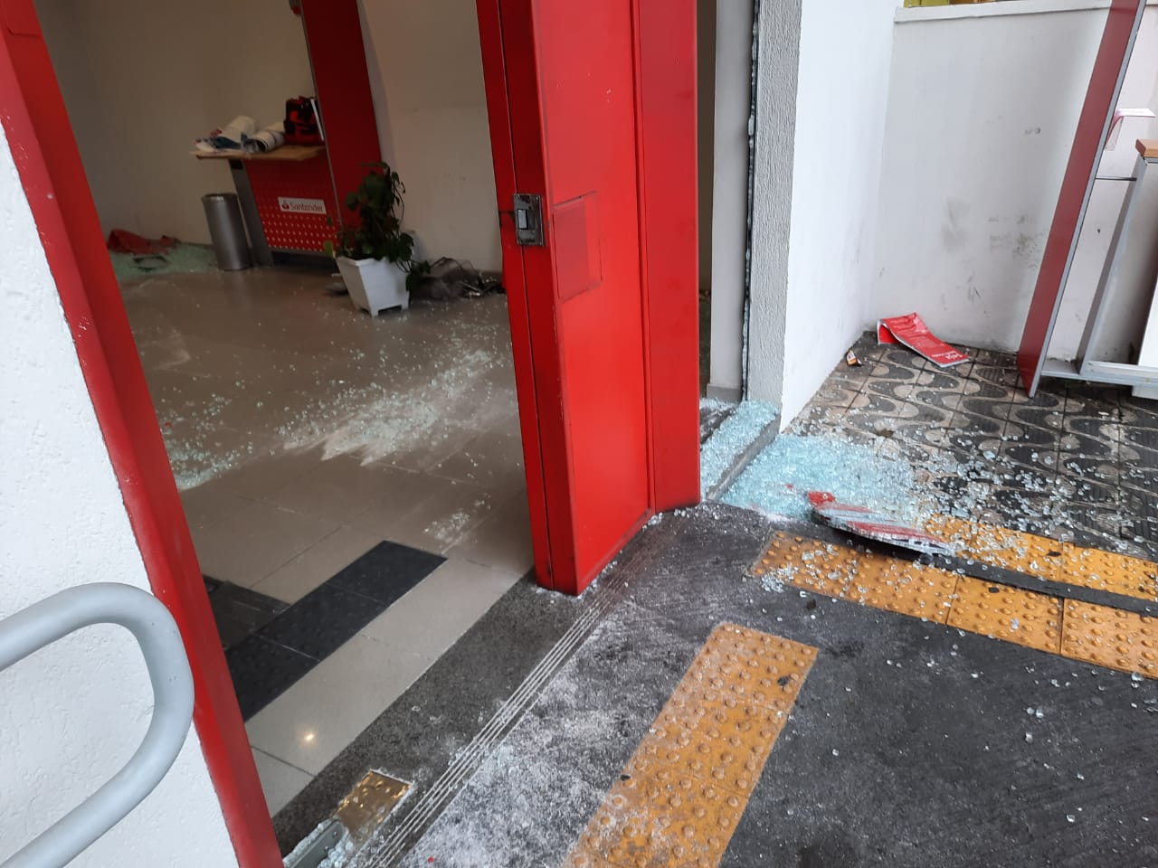 Na madrugada desta quinta-feira (5), por volta das 3h15, bandidos estouraram o caixa eletrônico do banco Santander da Vila Pires, em Santo André, na avenida Dom Pedro I.