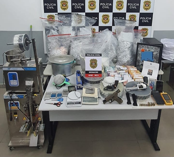 Dentro da casa, foram encontradas as drogas espalhadas em um closet, além da máquina de embalar. No total, foram apreendidos 18 mil porções já embaladas, 4,8 quilos para embalar, além de utensílios usados no preparo da droga. No terceiro endereço, em São Bernardo do Campo, mais dois revólveres foram encontrados. O investigado não estava no local.