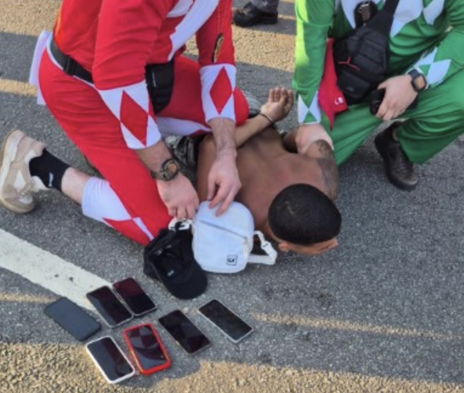 Na tarde deste sábado (1º), os agentes — fantasiados de power rangers — prenderam um homem com celulares roubados.