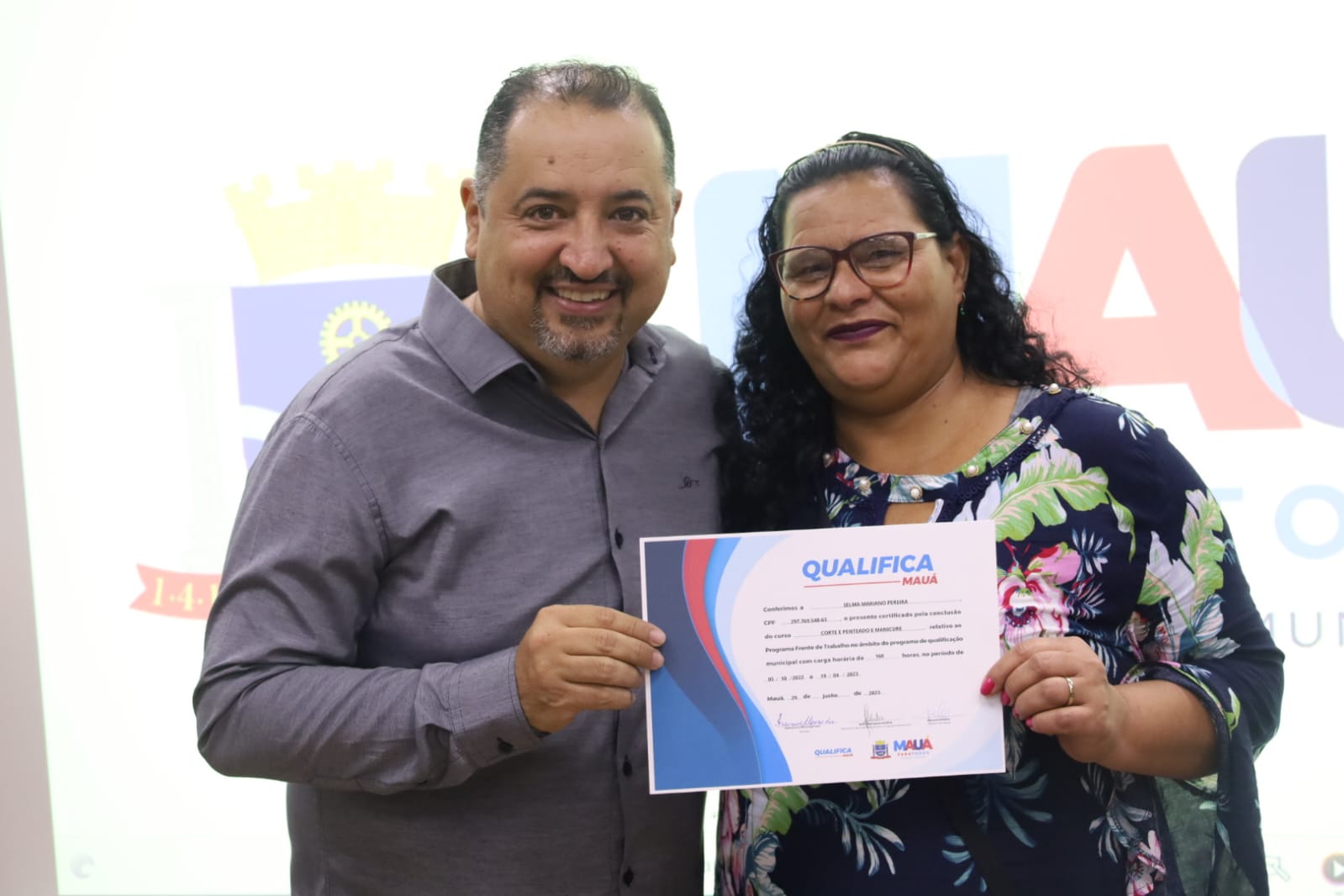 Os 65 formandos que atuam na Frente de Trabalho receberam o certificado de conclusão de curso das mãos do prefeito Marcelo Oliveira, do secretário de Trabalho, Renda e Empreendedorismo, Nelsi Rodrigues da Silva e do adjunto de Administração Roberto Rusticci, na manhã desta quinta-feira (29), na Prefeitura de Mauá.