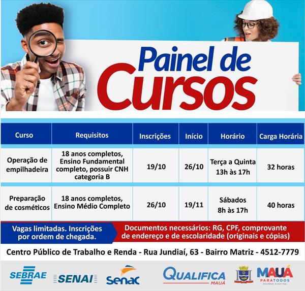 Os cursos fazem parte de mais uma ação do programa ‘Qualifica Mauá’. Para mais informações, munícipes podem telefonar para o número (11) 4512-7779, ramal 1836.