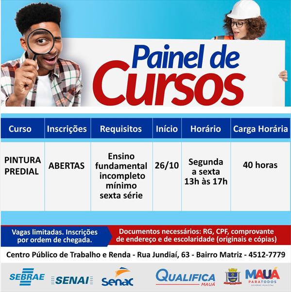 A Prefeitura firmou mais uma parceria com o Sebrae para trazer novo curso profissionalizante a moradores de Mauá. Nesta oportunidade, as aulas oferecidas são de pintura predial.