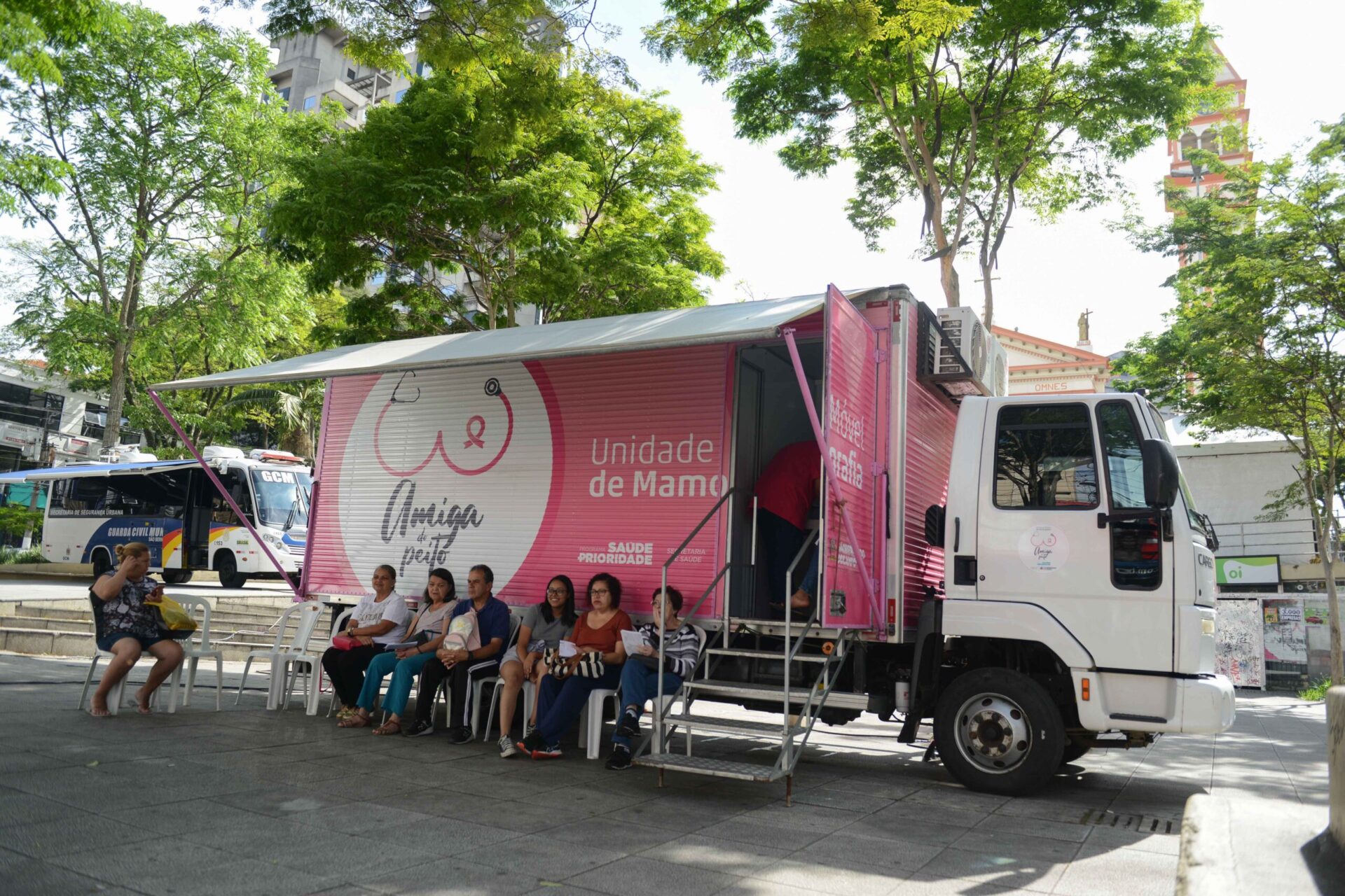 MAMOGRAFIA – A Unidade Móvel de Mamografia também faz parte dos equipamentos que ofertarão atendimento durante o Dia D. A carreta municipal atenderá demanda espontânea para todas as faixas etárias na Praça da Igreja Matriz, das 8h às 17h, com último bloco de atendimento às 16h. Nos demais dias, a demanda é espontânea e sem necessidade do pedido médico para pacientes entre 50 e 69 anos. Para as demais faixas etárias, o exame é agendado pelas UBSs e as pacientes precisam apresentar o pedido médico.