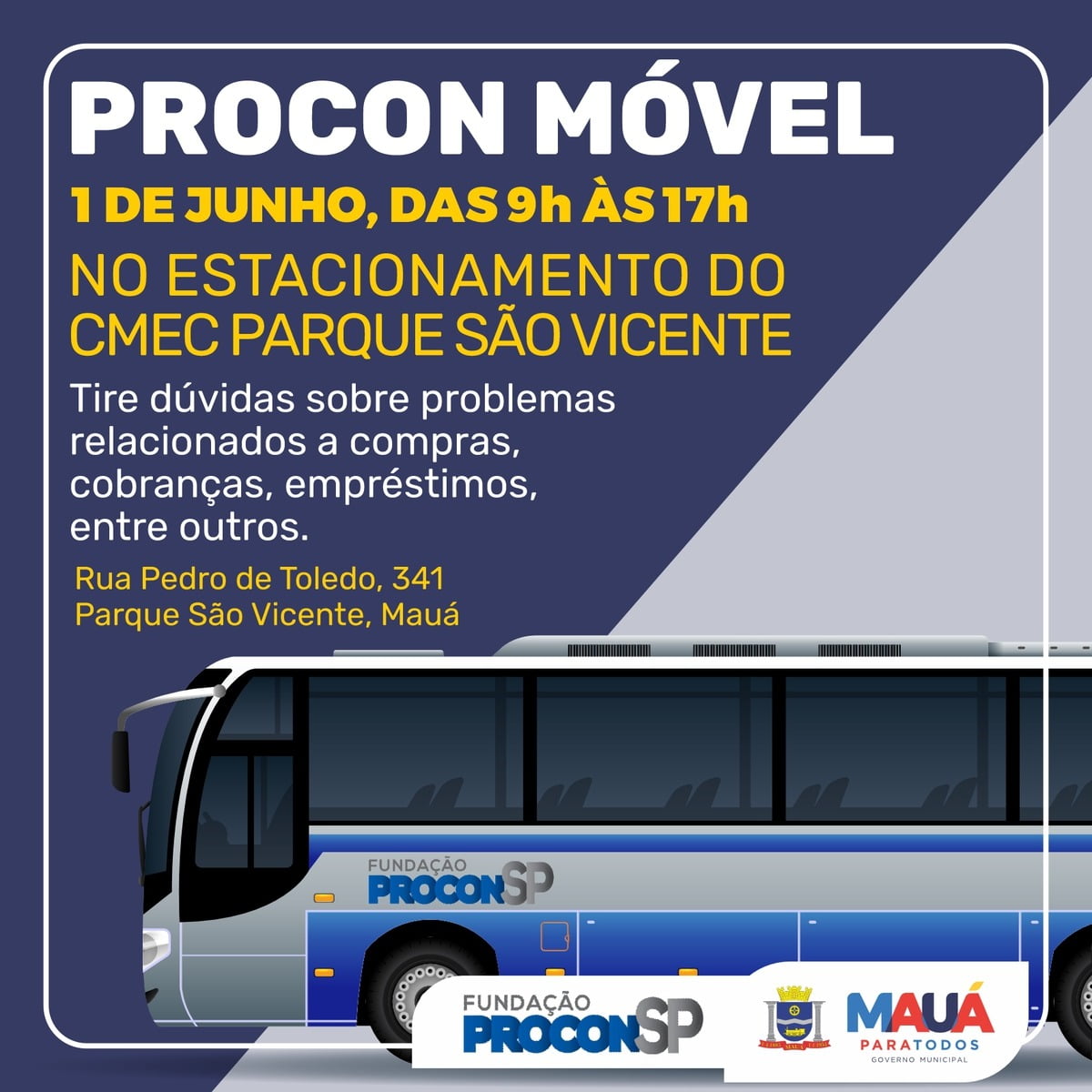 O Procon (Programa de Defesa e Proteção do Consumidor) de Mauá fará uma ação nesta quinta-feira (01/06), das 9h às 17h, no estacionamento da Fábrica de Artes (Rua Pedro de Toledo, 341, Parque São Vicente).