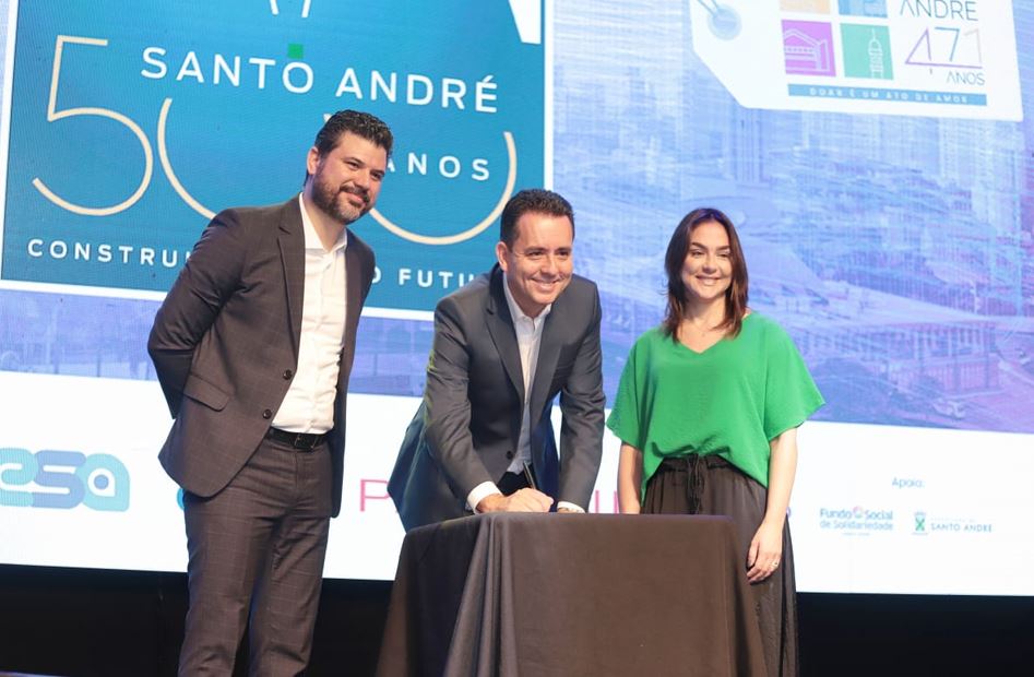 O programa Santo André 500 anos, que tem o objetivo de realizar o planejamento estratégico da cidade para as próximas três décadas, virou lei. A proposta, elaborada pelo Executivo, foi aprovada pela Câmara Municipal e sancionada nesta sexta-feira (12) pelo prefeito Paulo Serra, durante o evento “Santo André 500 anos – um presente o futuro”, realizado no Cine Theatro de Variedades Carlos Gomes.