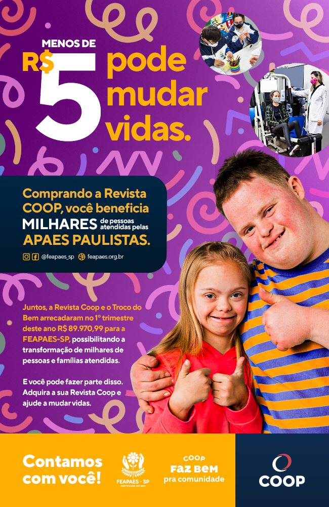 Para participar dos programas é bastante simples: ao adquirir em qualquer unidade de negócio Coop um exemplar da Revista Coop por R$ 4,90, 1 real é revertido à Feapaes. No segundo trimestre deste ano, a venda da revista com 76 páginas e que aborda temas como gastronomia, saúde, bem-estar, beleza, dentre outros, rendeu R$ 33.850,00.