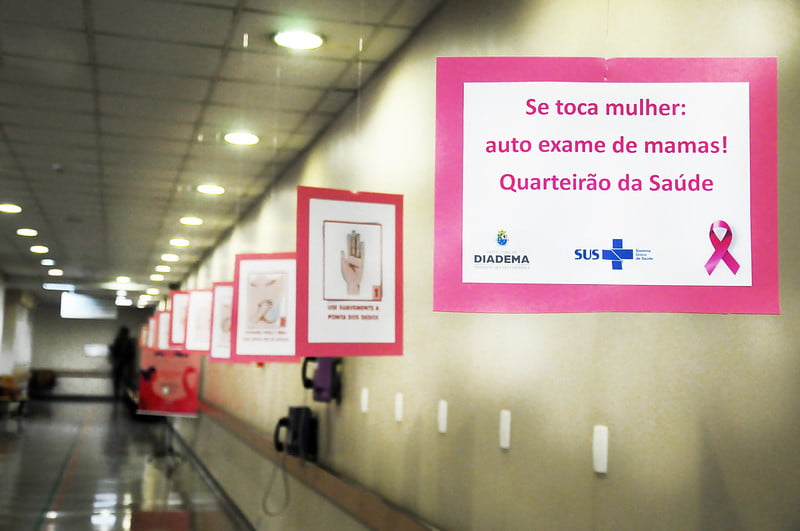 O autoexame ajuda a mulher a perceber a presença de alterações na mama. Para lembrar a importância desse autocuidado, a Secretaria Municipal da Saúde (SMS) de Diadema está com a exposição “Se Toca Mulher”, no ambulatório de Especialidades Quarteirão da Saúde (QS). O local onde foram instaladas as placas que indicam as etapas e o modo de realizar o procedimento foi definido pelo grande fluxo de pessoas dentro do serviço.