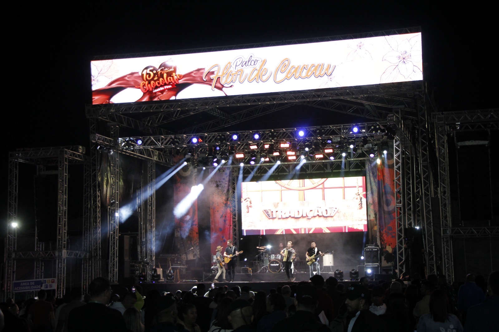 Com quase três décadas de história, o grupo sul-mato-grossense Tradição, que continua sendo referência no Batidão, na Vanera ou mesmo no Rasqueado, colocou a plateia para ferver na primeira noite do 15º Festival do Chocolate de Ribeirão Pires.