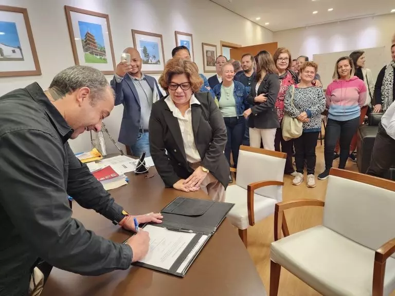 Na manhã desta segunda-feira, dia 10, o prefeito interino de Ribeirão Pires, Guto Volpi, assinou a Ordem de Serviço que autoriza o início das obras. Comerciantes, lojistas, secretários e vereadores acompanharam o anúncio, que aconteceu no gabinete.