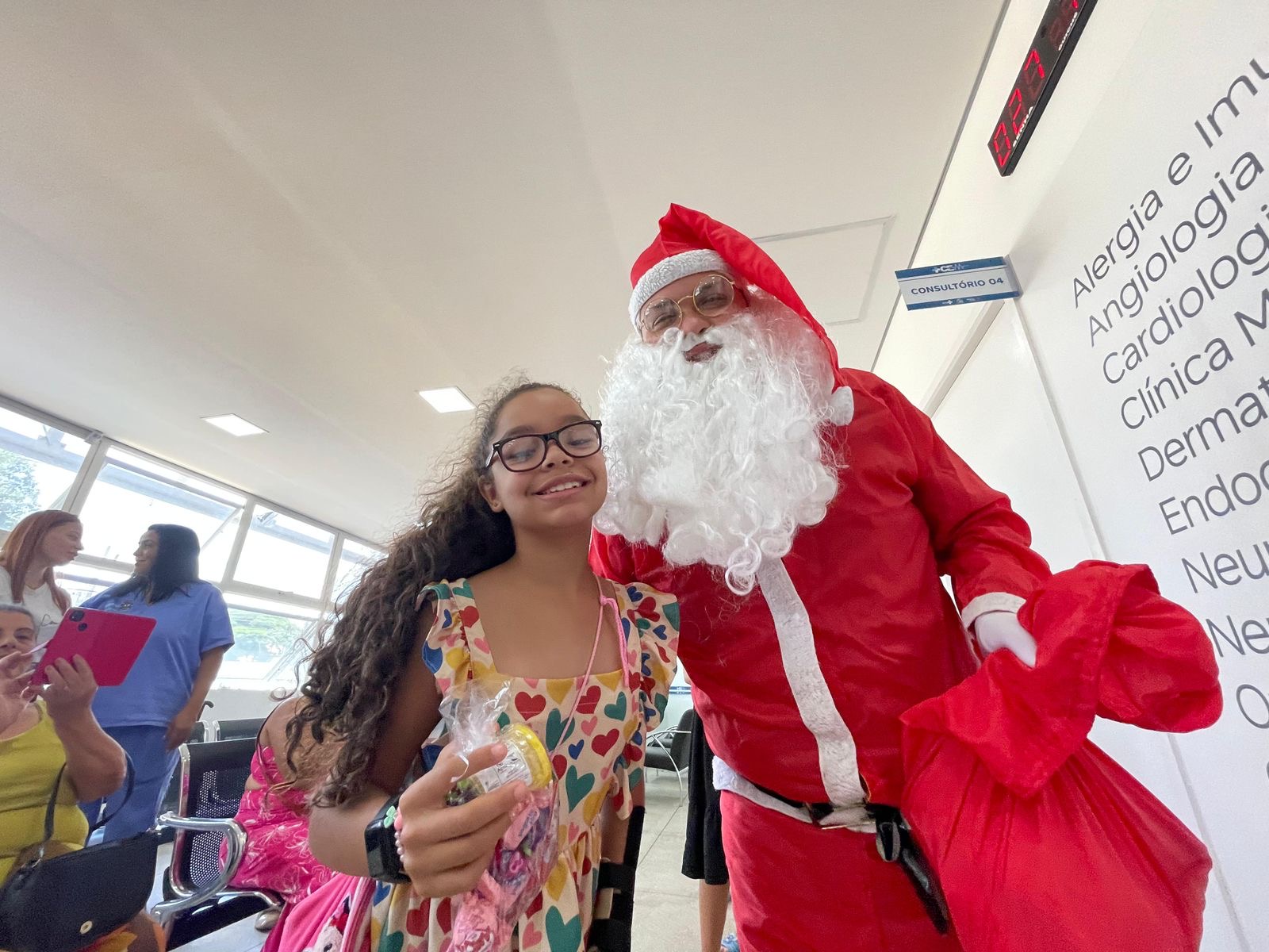 Além das consultas, os pacientes aproveitaram para tirar fotos com o bom velhinho. Iniciativa aprovada pelos responsáveis presentes na unidade, em ação que reforça o acolhimento nas unidades de saúde municipais.