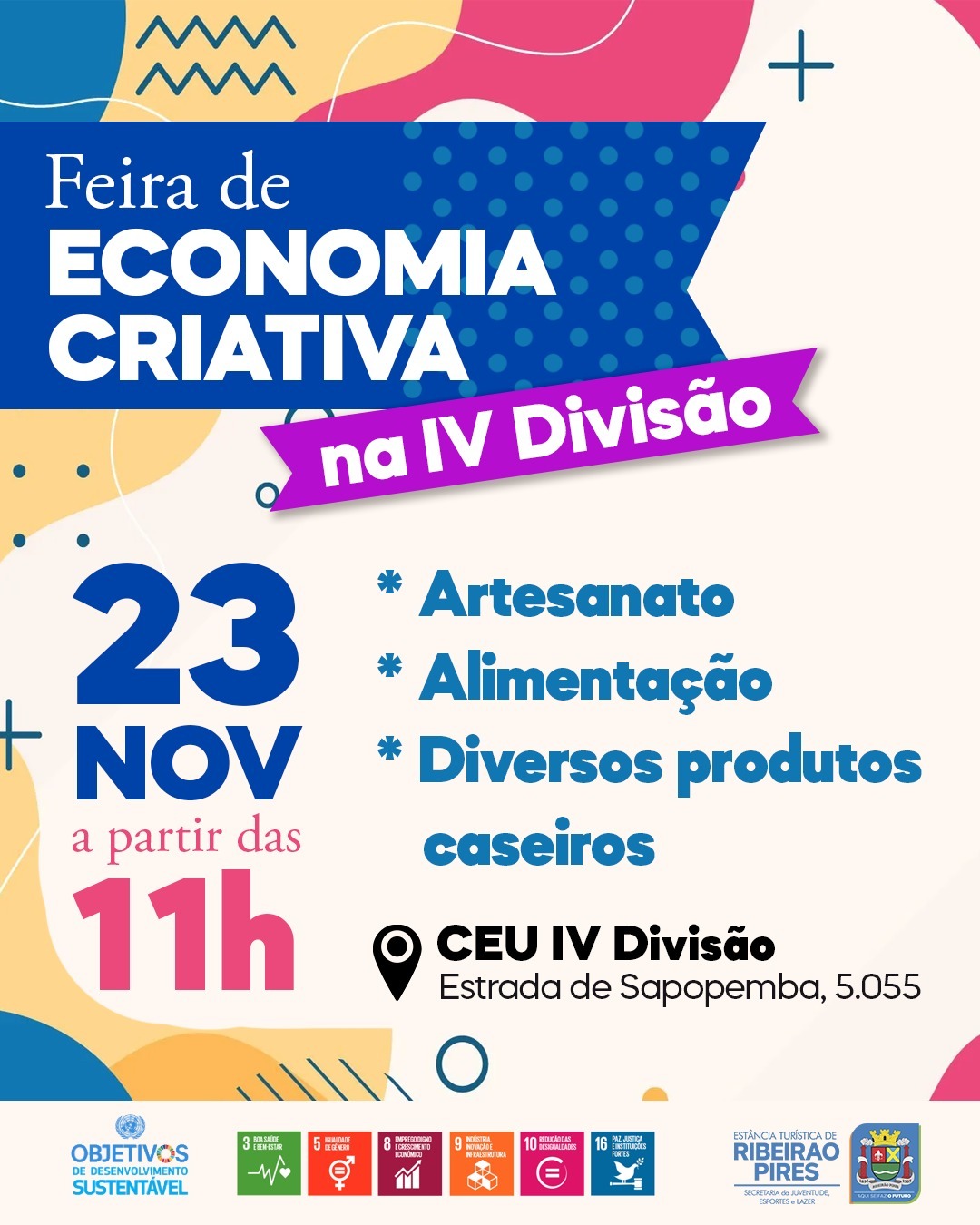 A Quarta Divisão será palco de mais uma iniciativa voltada ao fortalecimento da economia criativa e ao lazer comunitário. Neste sábado (23), a partir das 11h, a Feira de Economia Criativa promete reunir moradores e visitantes na CEU IV Divisão, localizada na Estrada de Sapopemba, 5.055.