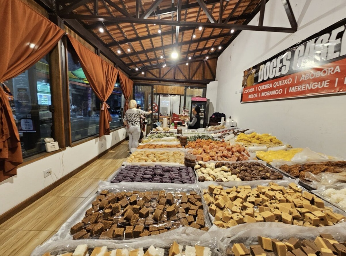 Entre os pratos mais diferenciados estão pudim de cambuci com chocolate, costelinha suína com molho de chocolate e também o torresmo de rolo com chocolate de pimenta, idealizado por Denis Rene, dono do restaurante ‘Rei do Sabor’, na Vila do Doce.