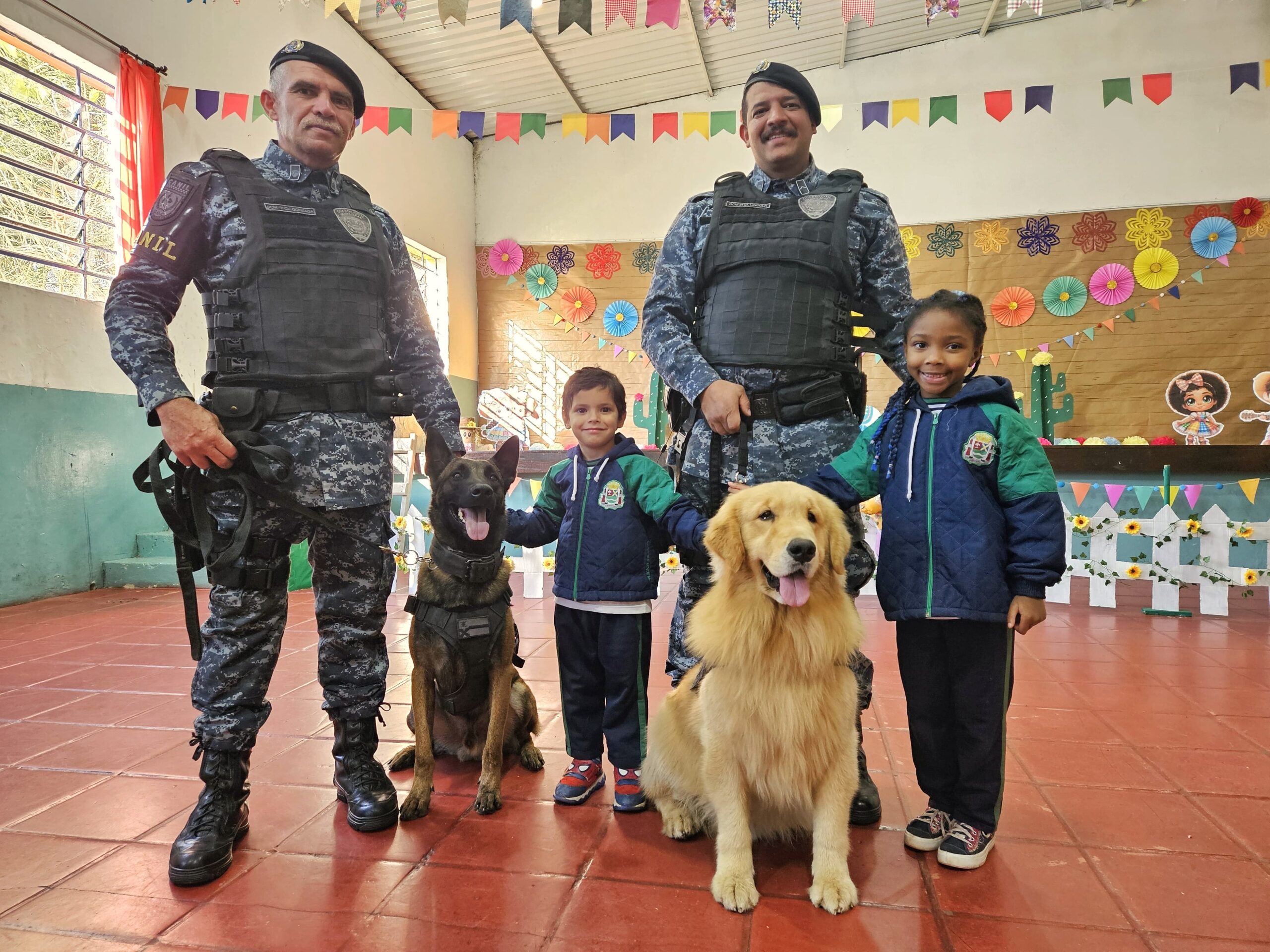 Numa parceria da Secretaria de Segurança Pública, Mobilidade e Defesa Civil e a pasta de Educação, a atividade consiste em levar os cães do canil da corporação às escolas para promover cidadania, respeito e segurança entre os estudantes.