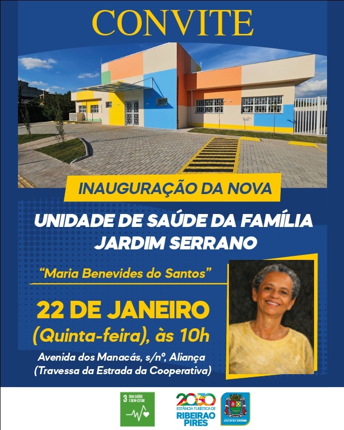 A Prefeitura de Ribeirão Pires, por meio da Secretaria de Saúde, inaugura nesta quinta-feira (22), às 10h, a nova Unidade de Saúde da Família (USF) do Jardim Serrano.