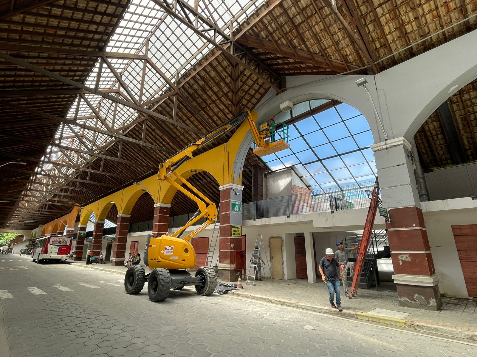 A Prefeitura de Ribeirão Pires iniciou nova etapa da revitalização da Rodoviária Turística, que fica no Centro da Estância, nesta segunda-feira (15). Equipe começou a pintar as paredes internas do terminal, assim com o os pilares no interior do prédio.
