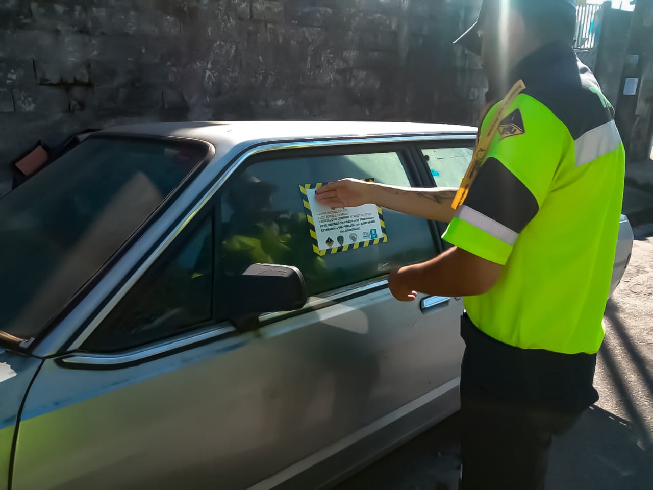 Os agentes de trânsito estão fixando adesivo nos veículos estacionados de forma irregular em vias públicas, indicando o prazo de 5 dias para a retirada do carro ou motocicleta. Em caso de descumprimento, o veículo poderá ser removido pelo guincho ao Pátio Municipal da cidade.