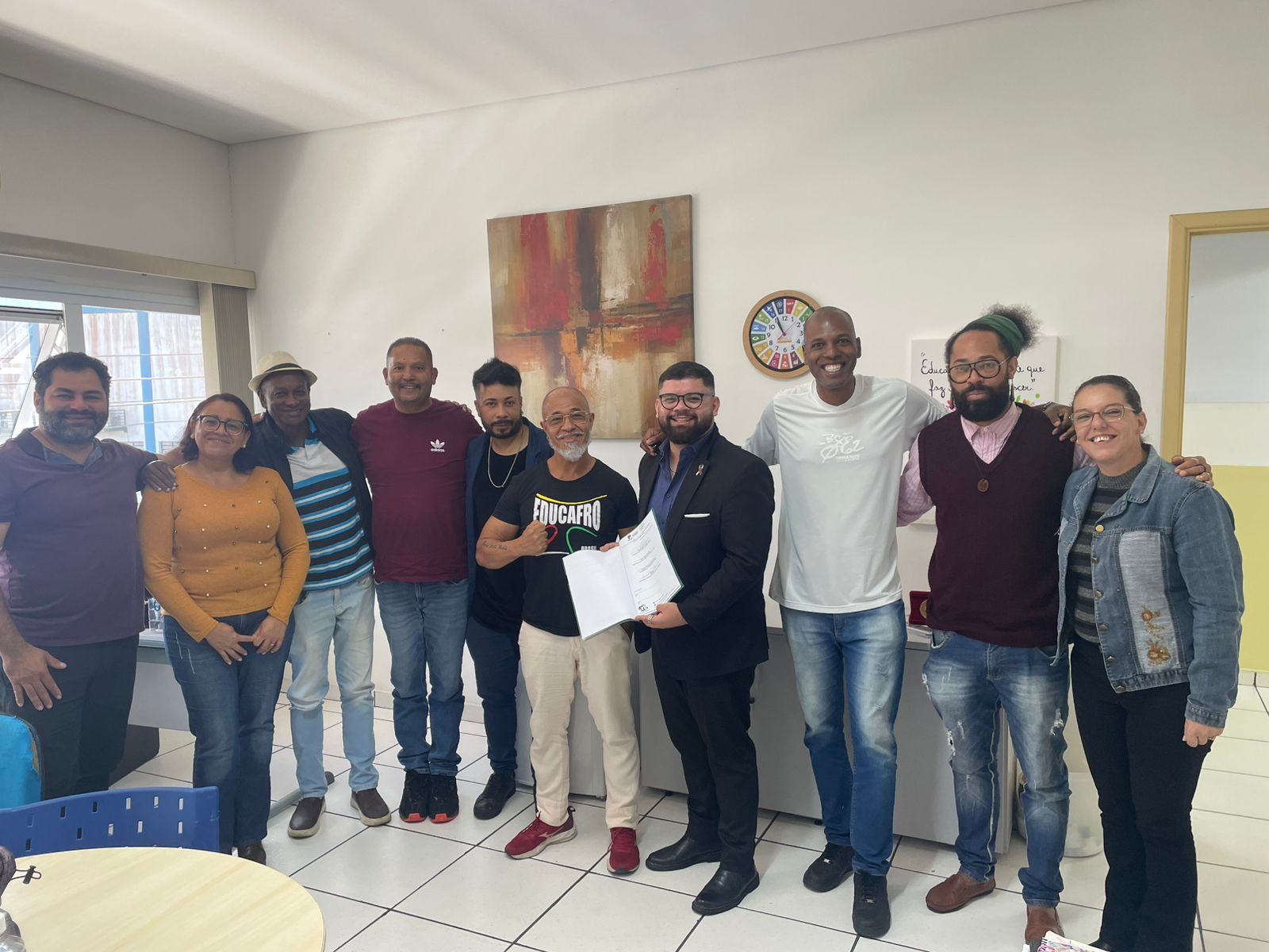 Juntos receberam o Sr. Jeziel Correia, representante do núcleo da instituição no município e membros do Conselho Municipal de Participação e Desenvolvimento da Comunidade Negra e Afrodescendente.