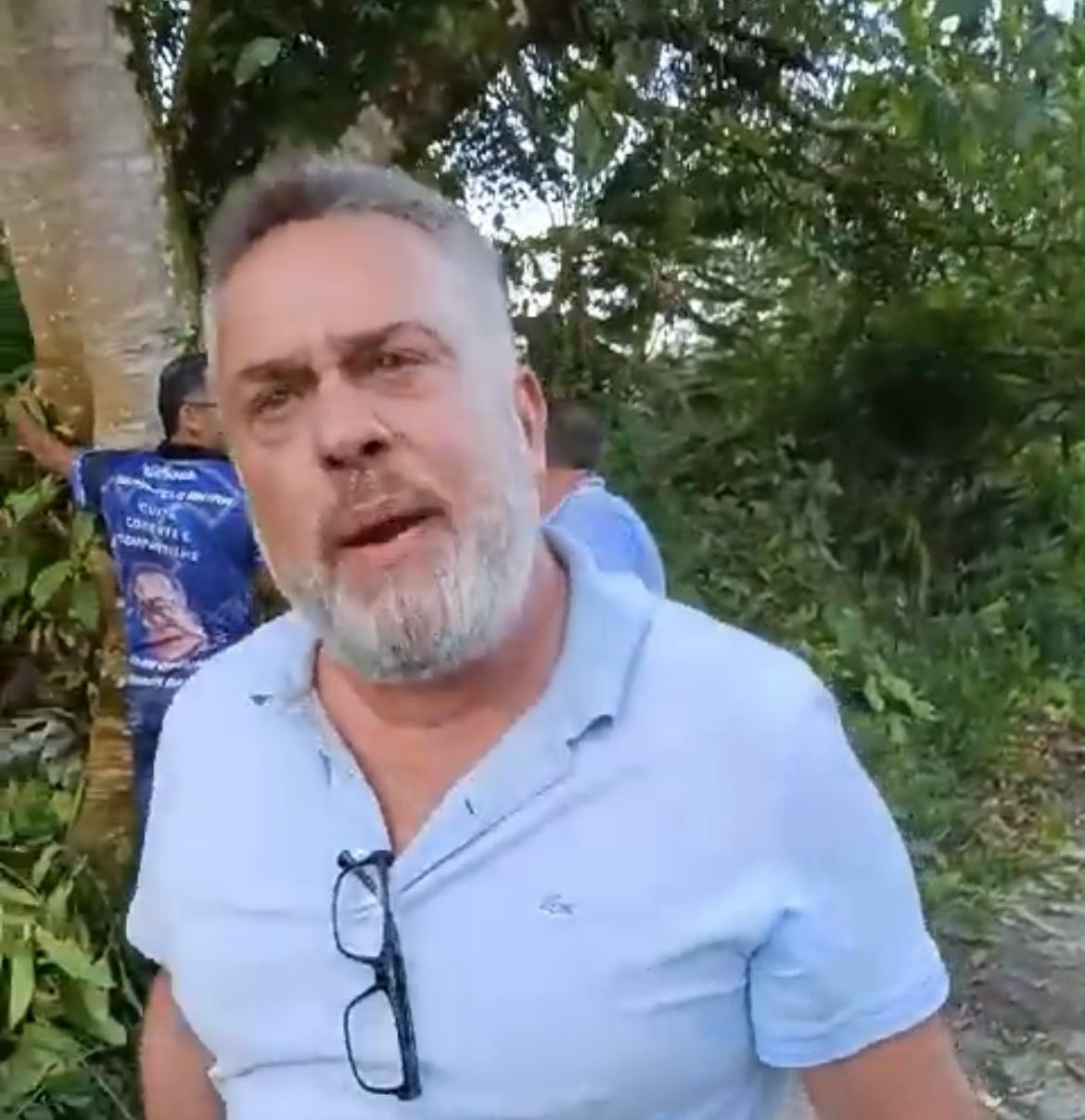 O vereador de Rio Grande da Serra, Akira do Povo, aparece em vídeo sendo agredido durante gravação de uma denúncia de crime ambiental.