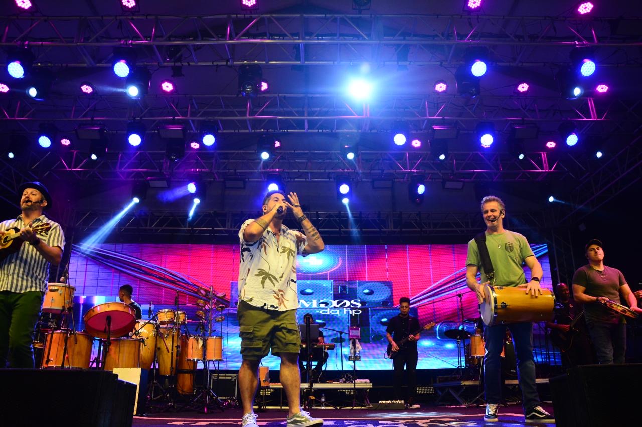 O pagode do grupo Inimigos da HP foi a principal atração no palco da Feira da Fraternidade neste domingo (7), no segundo dia de evento. Em clima nostálgico, a banda agitou o público com sucessos como “Toca um samba aí”, “Nosso filme”, “Caça e caçador”, entre outros hits próprios e de outros artistas.