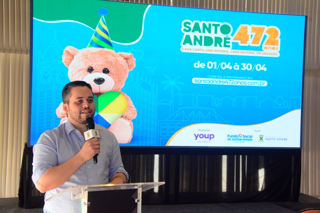 “A gente não trata este como o primeiro ano de aniversário da cidade. São 472 anos e respeitamos muito a história, criada por muitas mãos. Muitas pessoas contribuíram para o desenvolvimento de Santo André, para a gente chegar até aqui. Então nesse aniversário trazemos esse resgate histórico, por isso ‘cada canto, uma história, cada história, um orgulho’”, explicou o prefeito Gilvan Junior durante o evento de apresentação da programação, no Salão Burle Marx, no prédio do Executivo.