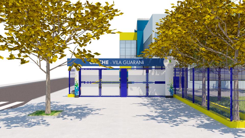 A creche Vila Guarani vai contar com três berçários (sala de atividades, sala de descanso e fraldário), sala de alimentação, lactário, sete salas de aula, uma sala multiúso, sanitários, dois solários, playground, secretaria e diretoria.