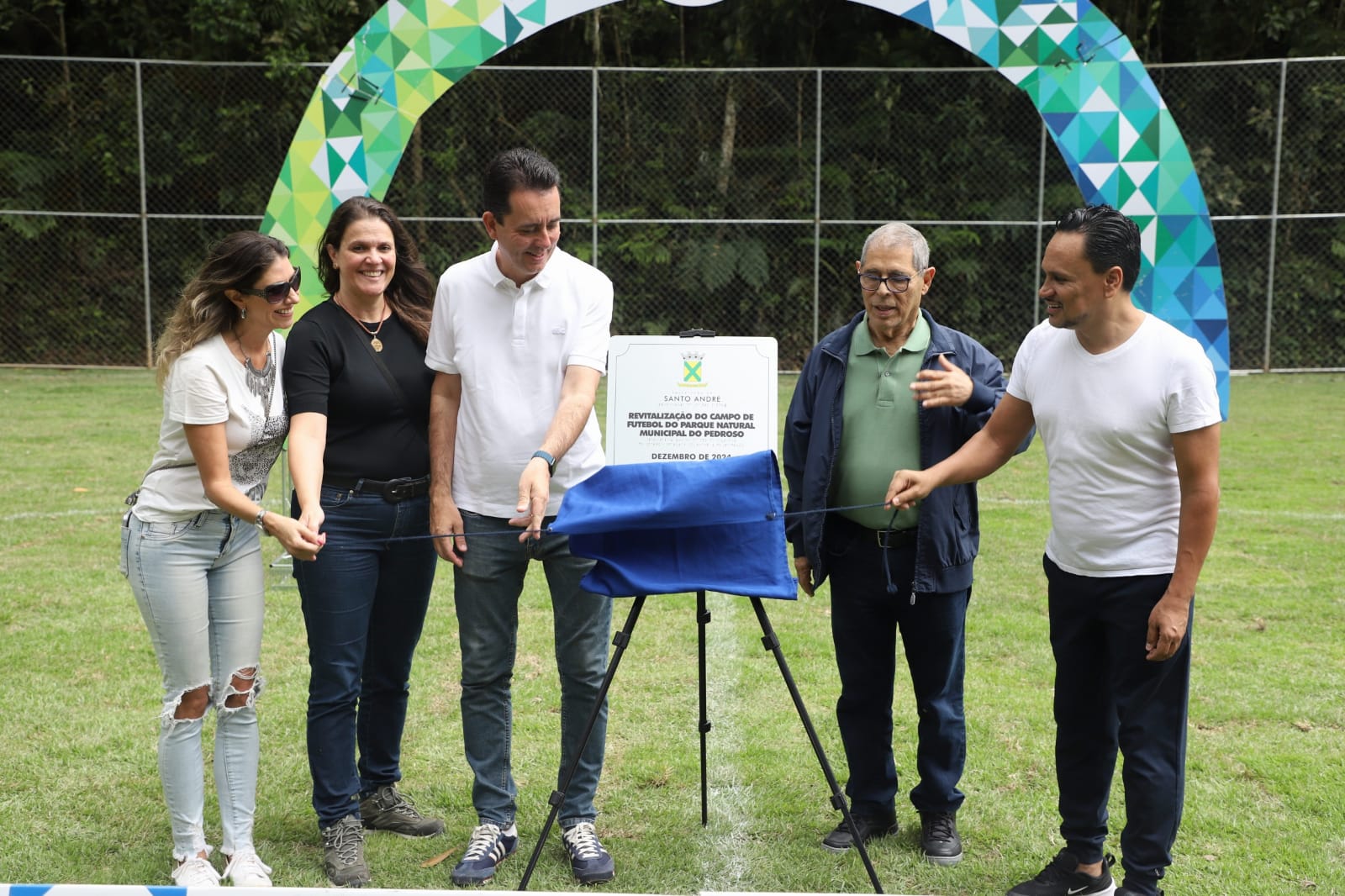 Os frequentadores do Parque Natural do Pedroso ganharam um presente de natal antecipado neste sábado (14). Com a presença do prefeito de Santo André, Paulo Serra, foi entregue a obra de revitalização completa do campo de futebol da Unidade de Conservação, que agora passa a ser carinhosamente conhecido como Arena Mata Atlântica.