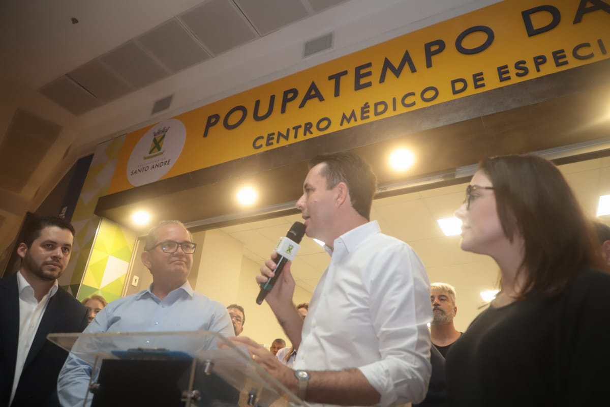 A Prefeitura de Santo André entregou nesta sexta-feira (2) o Poupatempo da Saúde, centro médico de especialidades instalado dentro do Atrium Shopping, na Vila Homero Thon. Com 1,6 mil metros quadrados, o equipamento é o maior do Brasil dentro de empreendimentos comerciais e ocupa dois andares do shopping, com 45 consultórios e capacidade para atender até 40 mil pessoas por mês.