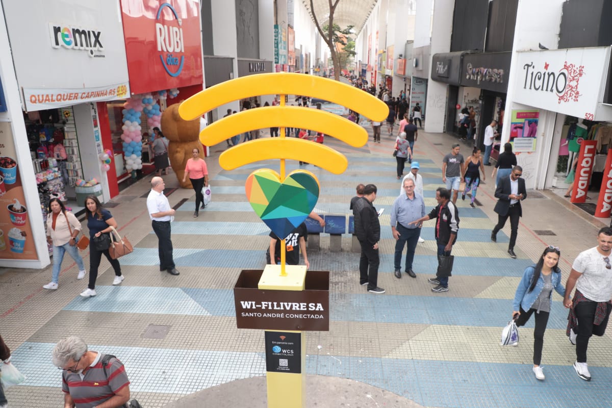 A Prefeitura de Santo André está avançando em mais uma etapa do programa “Wi-Fi Livre SA – Santo André Conectada”, iniciativa criada com o objetivo de levar internet gratuita sem fio para a população. O programa, lançado em 2018, cobria 11 parques da cidade, entre outros pontos, e agora chega a 50 locais. Um deles é o calçadão da Rua Coronel Oliveira Lima.